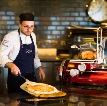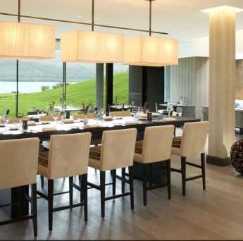 Riva schafft eine entspannte Umgebung mit seiner überdachten Außenterrasse mit Blick auf den See und die Gärten. Dort wird leichte, gesunde Spa-Küche mit italienischen Spezialitäten serviert ebenso wie Erfrischungen.
