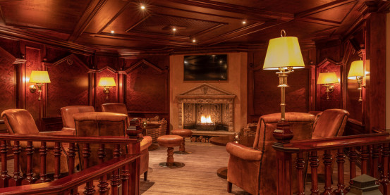 El bar principal de The Europe Hotel & Resort es relajante y acogedor, con revestimiento de madera y mullidos sillones de cuero donde puede disfrutar del fuego de la chimenea y la música tradicional irlandesa.