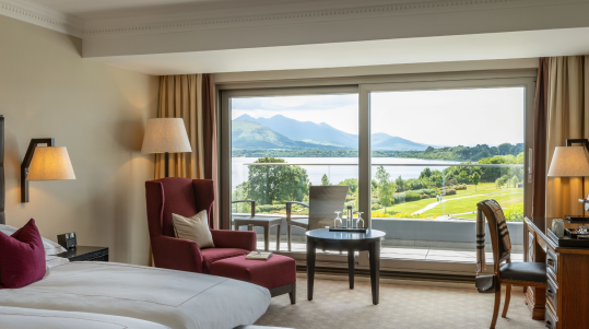 Our Lakeview Rooms at The Europe Hotel & Resort are our most popular room category and it is easy to see why. These rooms all offer breathtaking views of the Lower Lake of Killarney, MacGillycuddy’s Reeks Mountain Range and manicured gardens.
