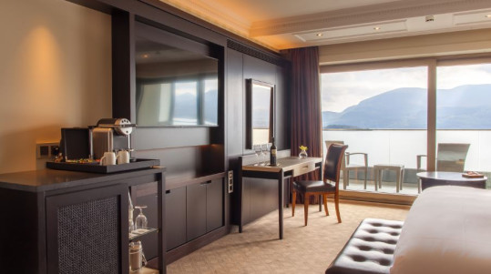 Deluxe by name and by nature, the light filled, contemporary elegance of our Deluxe Lakeview Rooms make them a natural choice for guests seeking extra luxury and style during their stay in Killarney. Relax from the privacy of the spacious south-facing well equipped balcony, boasting stunning direct views over the manicured gardens, Lough Léin and MacGillycuddy’s Reeks.
