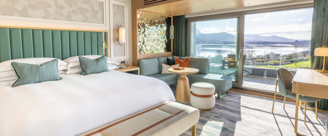 The Classic Rooms at The Europe Hotel & Resort offer breathtaking views of Ireland’s highest mountain range, The MacGillycuddy Reeks and the expansive Lough Léin. While these rooms do not offer a balcony, the view can be enjoyed from the comfort of the room through the expansive windows.