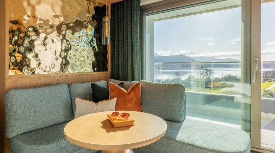 Whether you're seated in the comfortable seating area or lounging on the expansive balcony, you'll be treated to views overlooking the hotel gardens, the tranquil Lough Léin and the majestic MacGillycuddy’s Reeks – Ireland’s highest mountain range.